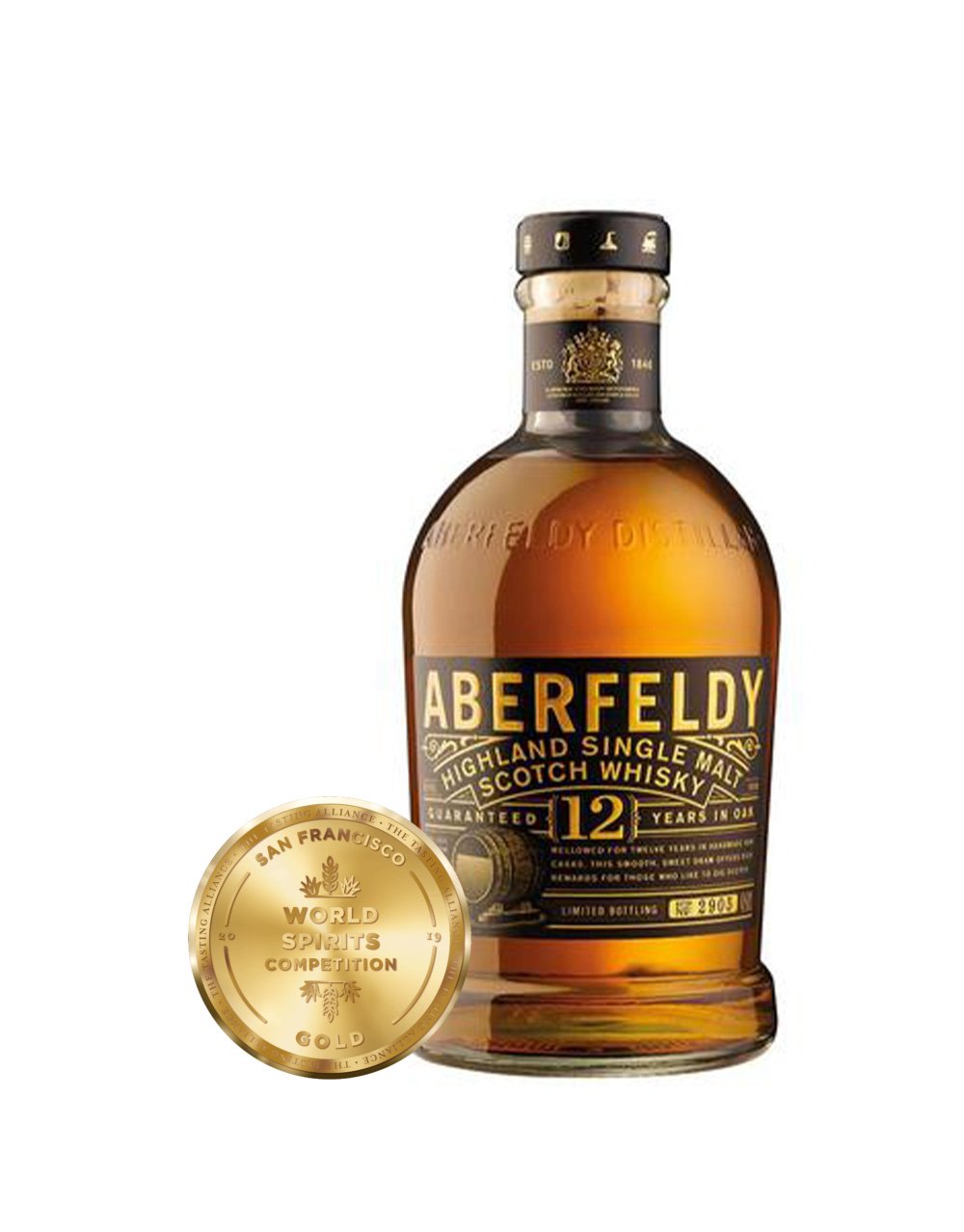 Nestled within a lush valley in the foothills of the Central Highlands of Scotland, Aberfeldy Distillery lies within the quaint village of Aberfeldy, Perthshire. Aberfeldy whisky is known as the ‘Golden Dram’. Golden, for the distillery’s water source is the famous Pitilie Burn – renowned for its water quality and famed for its rich deposits of alluvial gold. Golden, for Aberfeldy continues to be awarded gold medals in international spirits awards. Golden, for every sip laden with honey, spices, citrus and hints of vanilla.