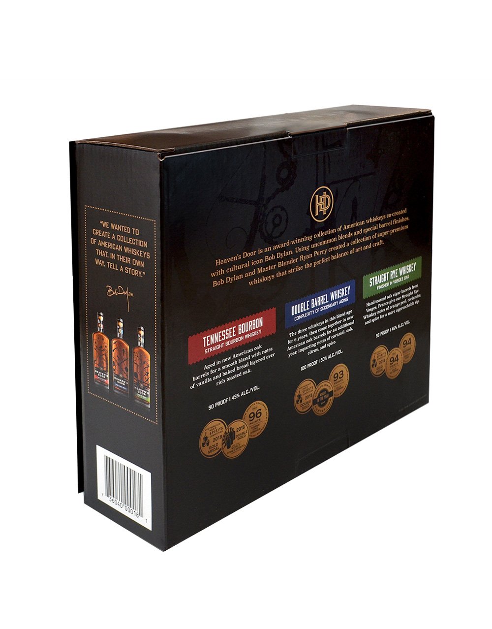 Introducing the Heaven’s Door Trilogy Collection, co-created with Bob Dylan. Featuring all three award-winning expressions, the trilogy pack invites consumers to experience the breadth of the collection. Each 200 ml bottle showcases Dylan’s distinctive iron gate artwork—a striking blend of art and craft.