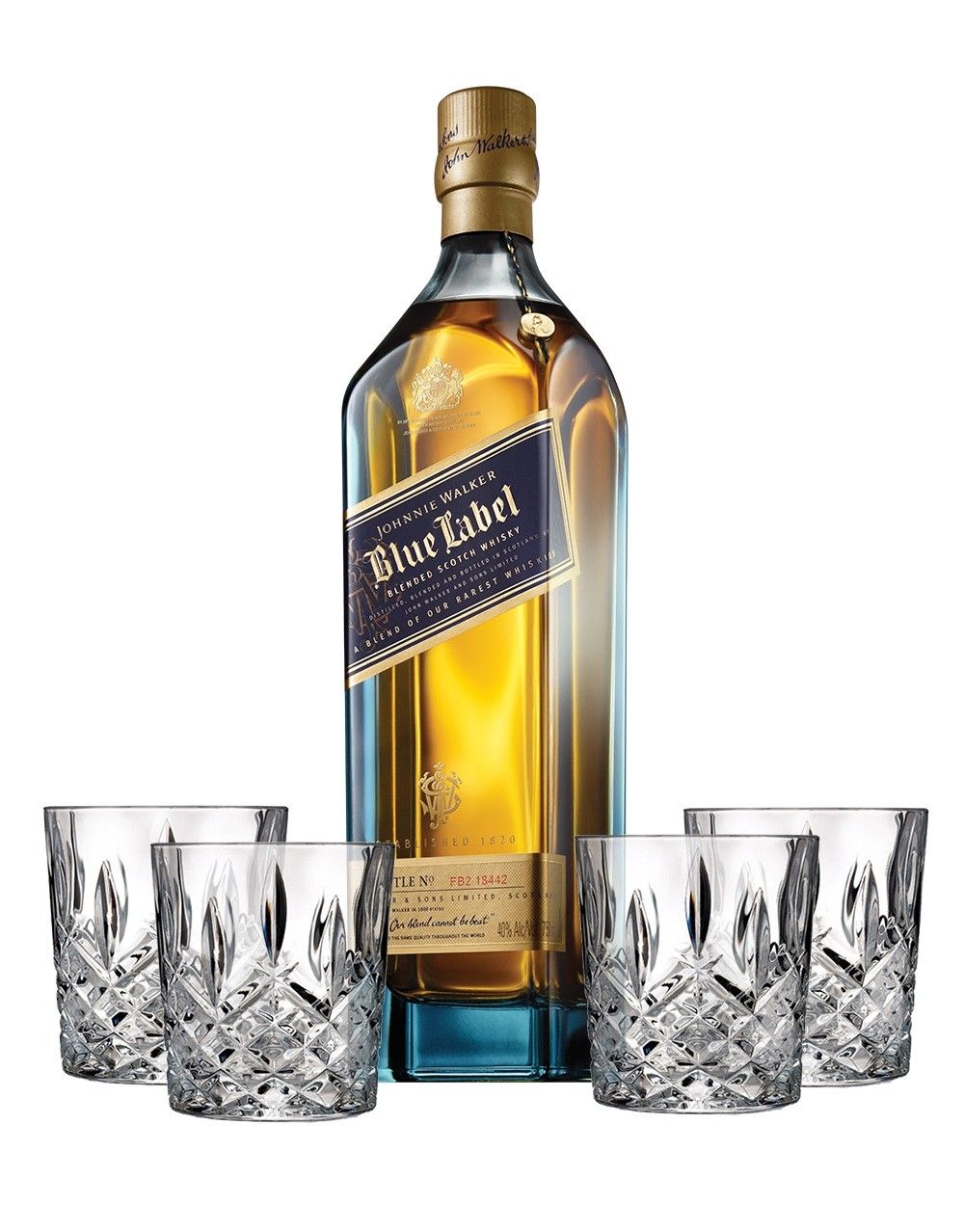 Johnnie Walker Blue Label® with 4 Markham Marquis by Waterford Double Old Fashioned Glasses