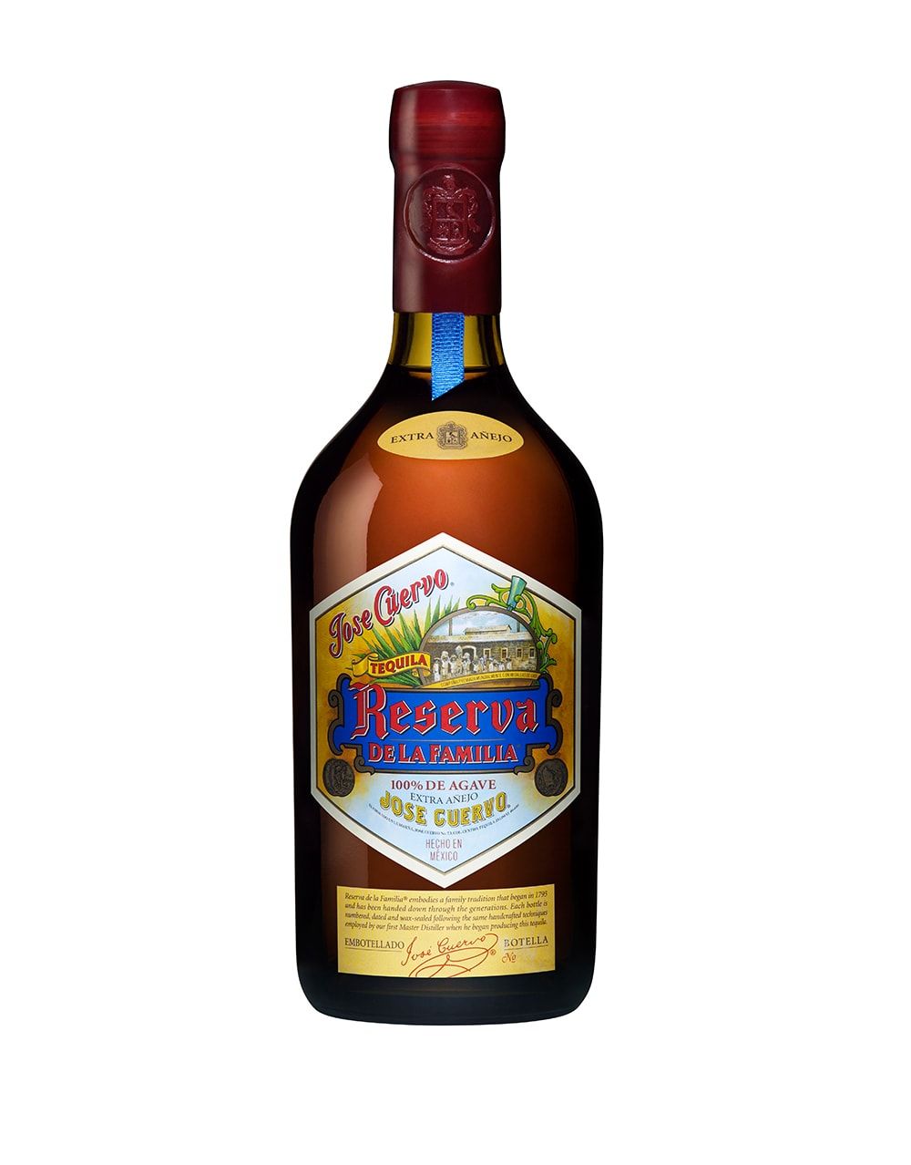 For over 10 generations, Reserva de la Familia® was a family secret only shared with the closest of friends. In 1995, to celebrate their 200-year anniversary, the family decided to share this special blend of Tequila reserve with people who truly savor an exceptional taste. Only the finest 10-12 year-old agaves are hand-selected,and only the most flavorful inner portion of the agave’s heart is used to make this award-winning 100% Blue Agave Extra Añejo Tequila. It is aged for a minimum of two years in the Cuervo family's private cellar and combined with family reserves as old as 30 years.