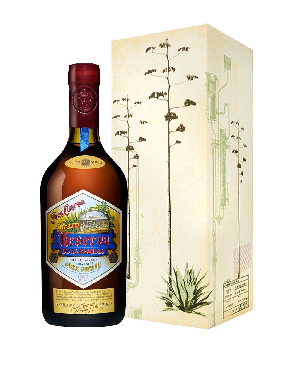 The bottle is made of brown, hand-blown glass, and is individually numbered and sealed with wax. Every year, the Cuervo family commissions a Mexican artist to design the new limited edition collectible box, making Reserva de la Familia® the ultimate gift. This year's collectible box artist, Carlos Aguirre, is considered one of the founders of contemporary art in Mexico.