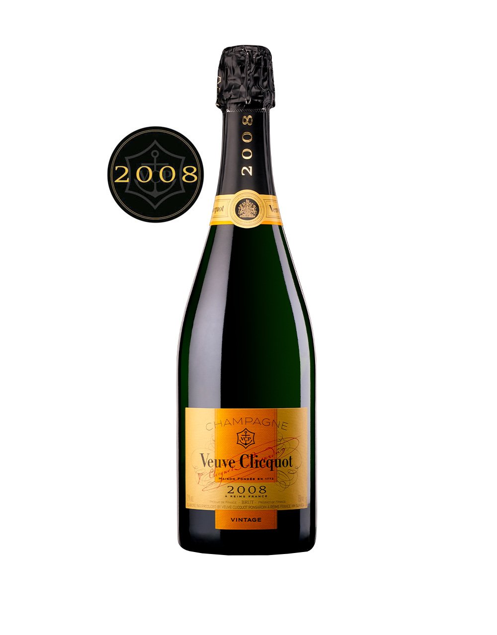 As with every Vintage, this wine is a reflection of the year's weather and climate. 2008 ended wonderfully with the grapes maturing in ideal conditions. The harvests, grouped together throughout Champagne, took place between Mid-September and early October, in perfect weather. The quality of this harvest was exceptional, with great potential for aging. Naturally then, 2008 was declared a Veuve Clicquot Vintage, the third in the decade following 2002 and 2004 and the House's 65th since its first Vintage of 1810. New to this 2008 Vintage: 5% of the wines were produced and aged in wooden casks from forests in Central France, from Allier and Vosges. This was to increase the complexity and aromatic richness of our Vintages, our gourmet wines. These cask-aged wines act as the spices for the blend. They bring very lightly woody, vanilla and toasted aromas.